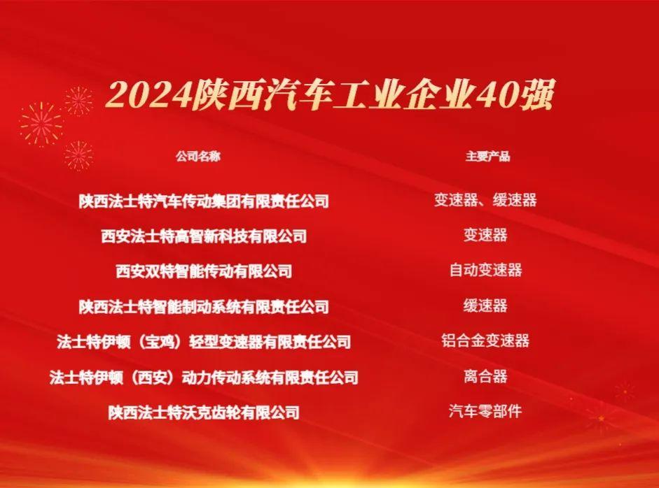 法士特榮登陜西汽車工業(yè)40強(qiáng)