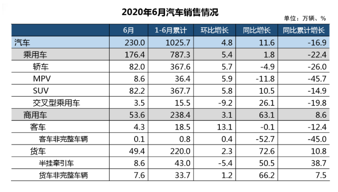 6月,我國(guó)汽車(chē)市場(chǎng)延續(xù)回暖勢(shì)頭,保持較好的發(fā)展態(tài)勢(shì),汽車(chē)產(chǎn)銷(xiāo)分別完成232.5萬(wàn)輛和230.0萬(wàn)輛,環(huán)比分別增長(zhǎng)6.3%和4.8%,同比分別增長(zhǎng)22.5%和11.6%,刷新了6月產(chǎn)銷(xiāo)量的歷史新高。